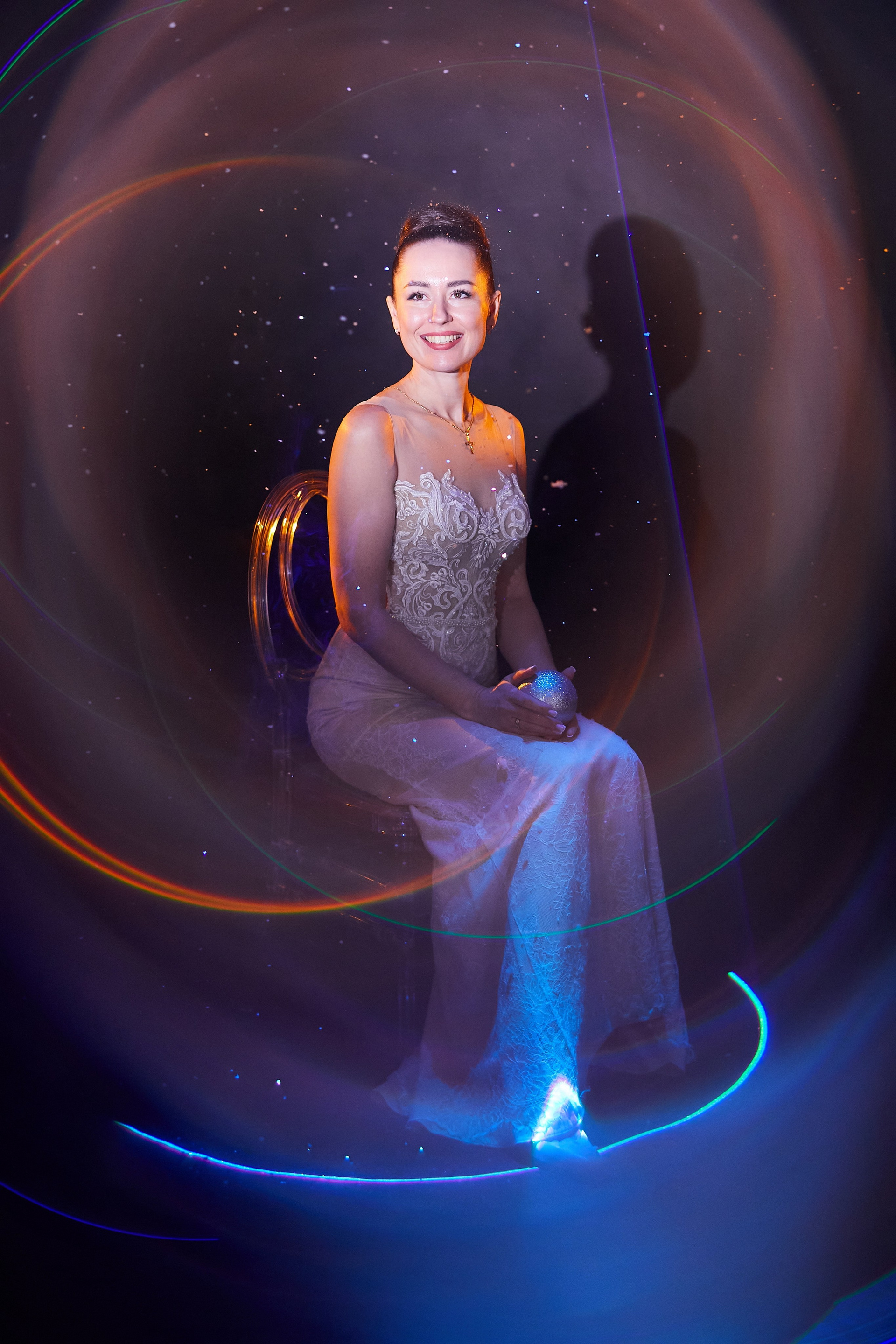 Представьте: тёмное пространство, прерывистый свет, тонкие лучи лазера и лёгкая дымка дымогенератора… И вот уже перед вами — целая галактика. Этот фотопроект — не просто игра со светом и спецэффектами. Это попытка уловить и запечатлеть то неуловимое, что живёт внутри каждого из нас: бесконечность, глубину, тайну. Что вы видите? Мерцающие созвездия, рождённые переплетением лазерных лучей; туманности из деликатного дыма, танцующие в ритме света; бескрайние просторы, которые словно открываются в самом сердце кадра. Это не просто красивые картинки. Это метафора: космос — он не где‑то там, за миллионами световых лет. Он — в нас. В наших мыслях, мечтах, чувствах. В той безмерной глубине, которую мы порой не замечаем в повседневной суете. Каждый снимок — как окно в иную реальность. Или, может быть, как зеркало, в котором отражается наша собственная внутренняя Вселенная…