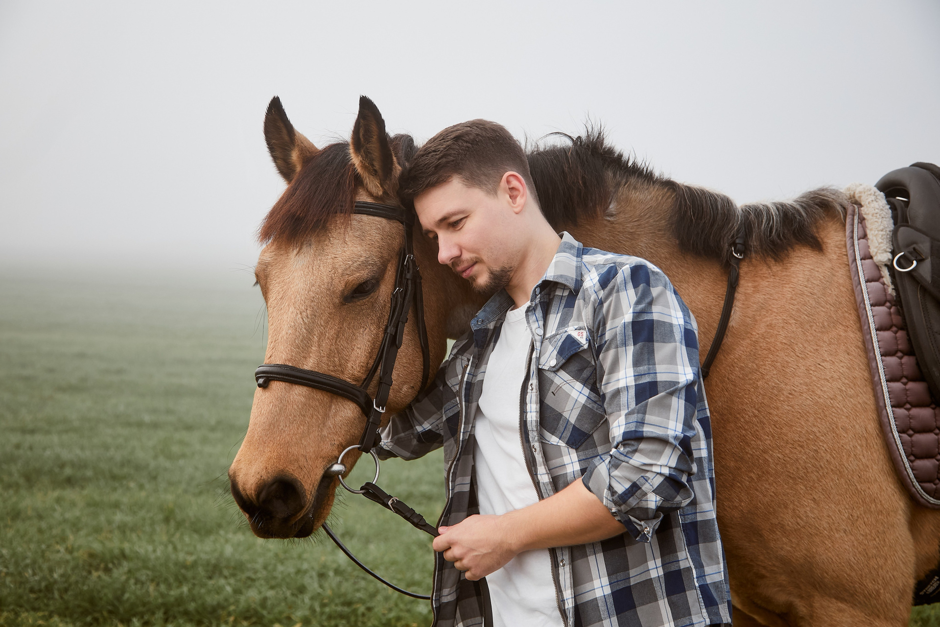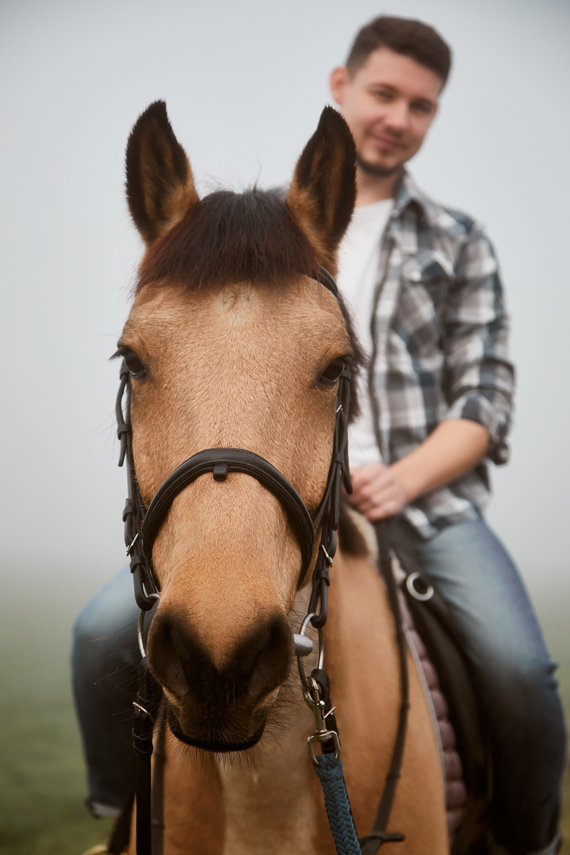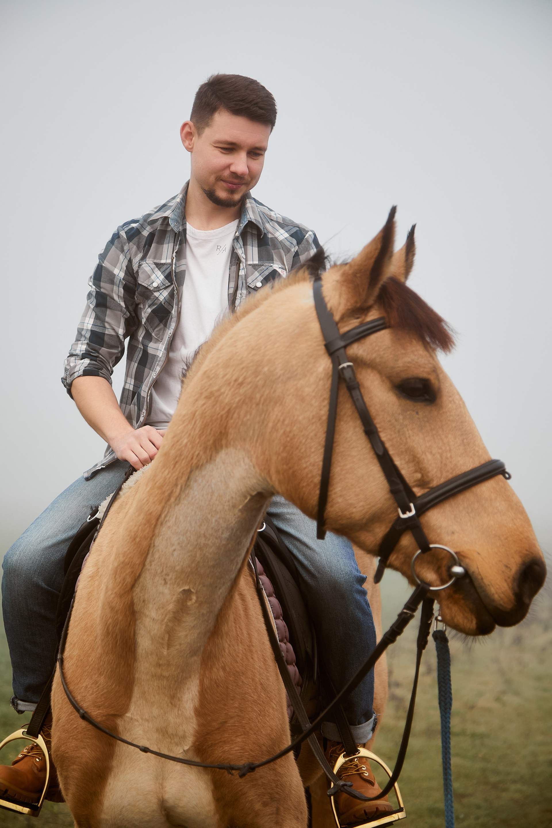 Когда время будто замирает… В тумане, на краю мира, где встречаются небо и земля, — только они и этот величественный конь. Тишина, шёпот ветра и взгляд, полный любви. Иногда счастье — это просто прогулка в три следа.