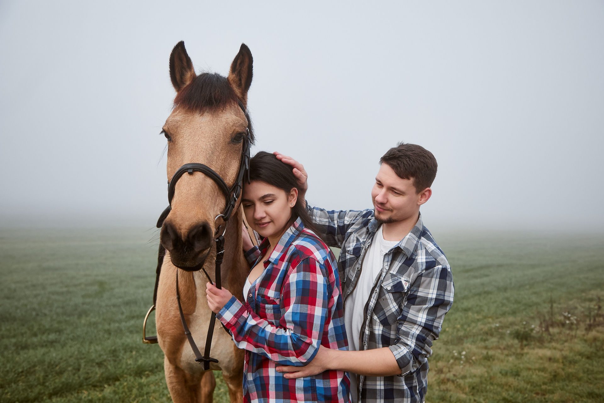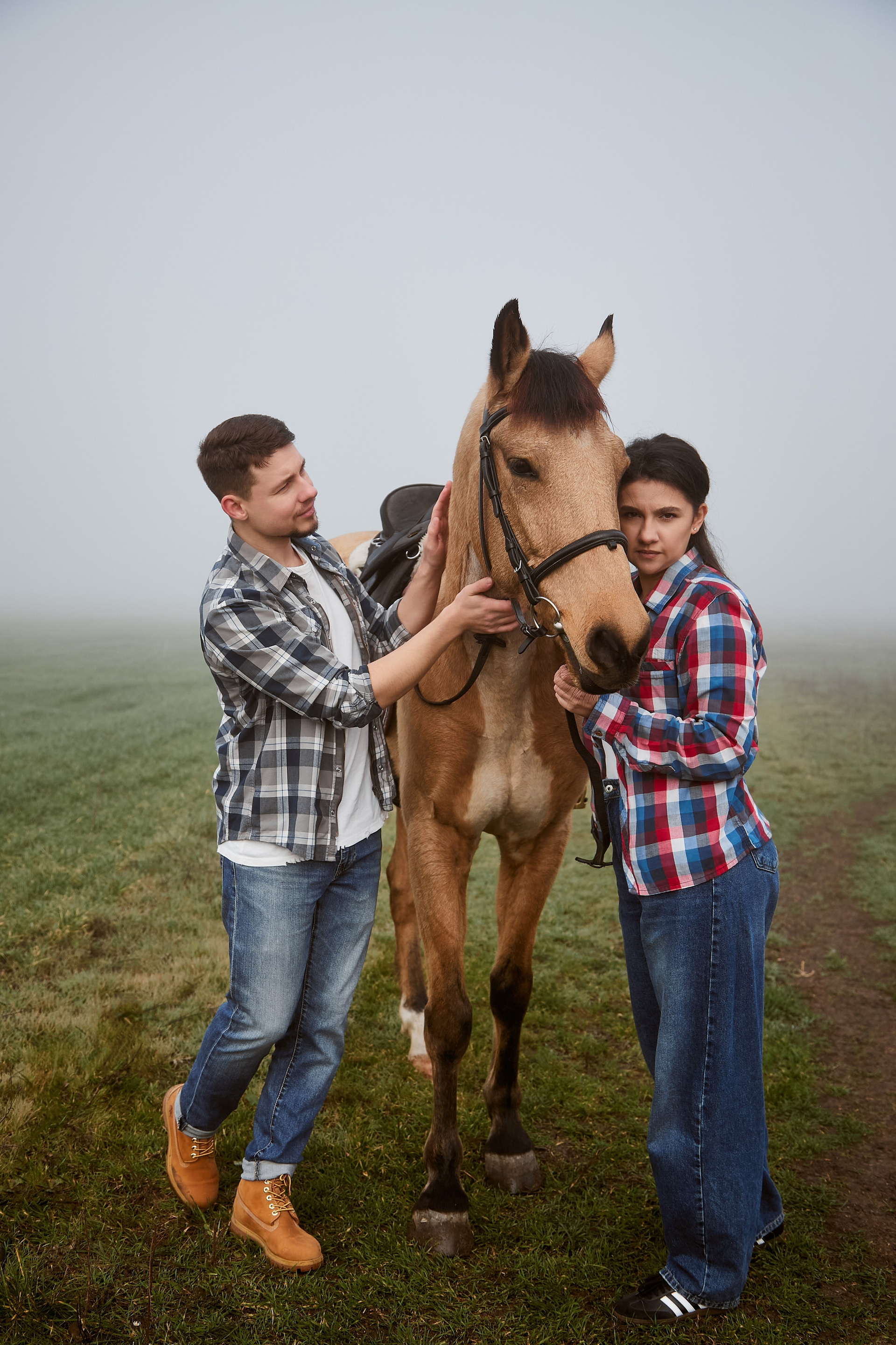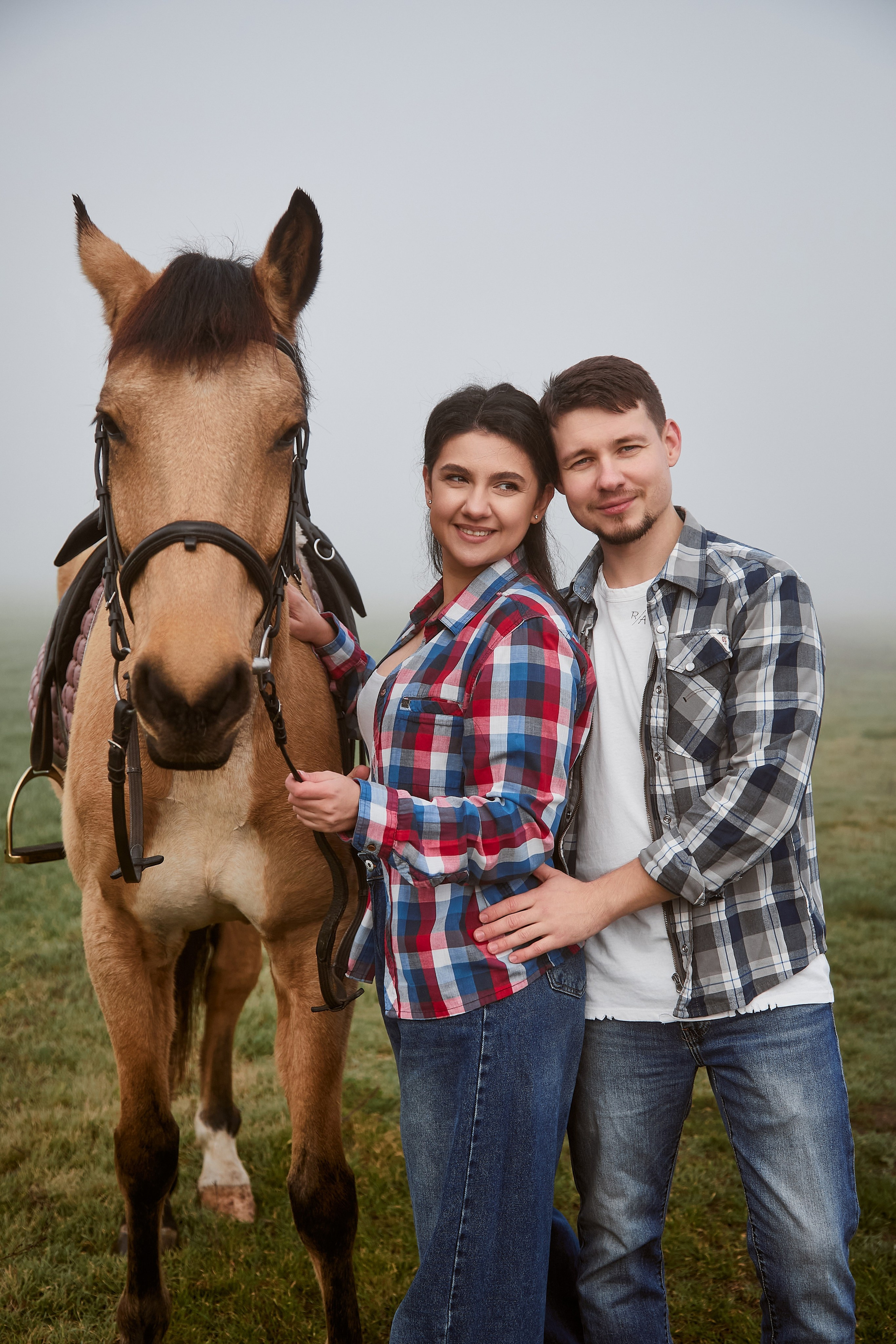 Когда время будто замирает… В тумане, на краю мира, где встречаются небо и земля, — только они и этот величественный конь. Тишина, шёпот ветра и взгляд, полный любви. Иногда счастье — это просто прогулка в три следа.